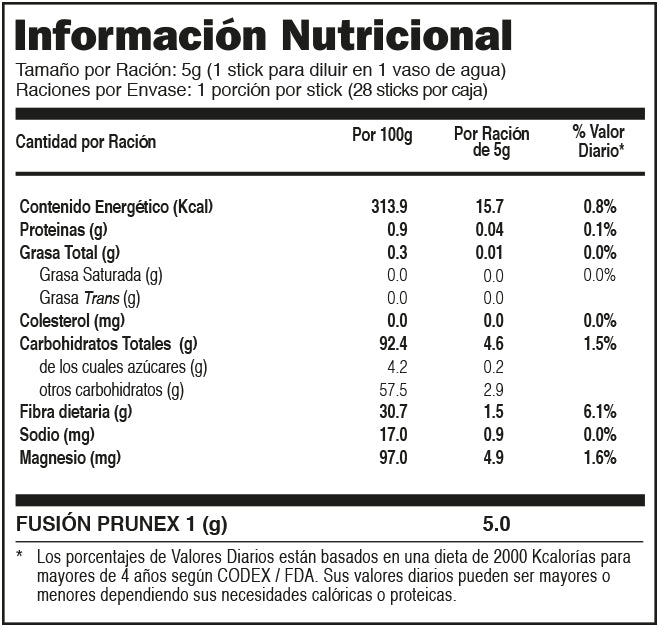Fusión Nutracéutica: Mix de Fibras (Psylium, Inulina de achicoria, Mucílago de Linaza) Kelp, Anís Estrella, Extracto de Guindones. Bebida frutal en base a una mezcla de fibras solubles y extracto de guindones, los cuales representan una alternativa eficaz en casos de estreñimiento, promoviendo la desintoxicación del colon. Esta fusión te ayudará a: